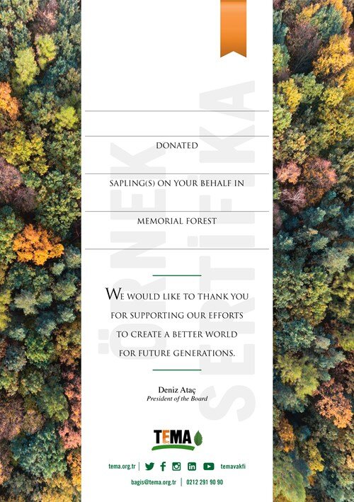 By providing your email address during the checkout process, you'll receive an official certificate from TEMA as proof of your contribution to our environmental efforts. Together, we can make the world a greener place, one tree at a time.