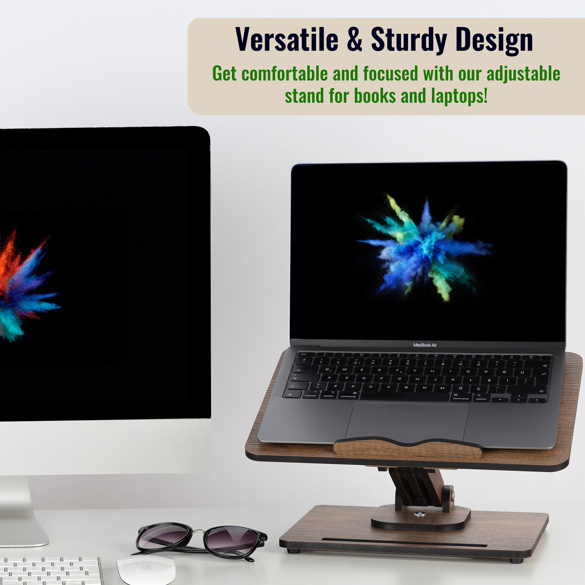 - ❇️Stylish and Practical: Our Book Stand is not only practical but also stylish, making it a great addition to any kitchen or workspace. The wooden stand adds a touch of elegance to your decor, while the adjustable height and angle make it a functional and practical accessory for any book lover or cooking enthusiast. The laptop riser is perfect for anyone who needs a comfortable and adjustable viewing angle while working on their computer.